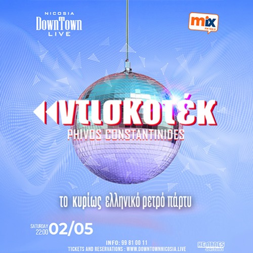 🗓️ Σάββατο 2 Μαΐου | 22:00 📍 DownTown Live, Λευκωσία Στα decks οι DJ Φοίβος Κωνσταντινίδης! Υποστηρικτής: Kemanes Print Shop Διοργάνωση: Mix FM