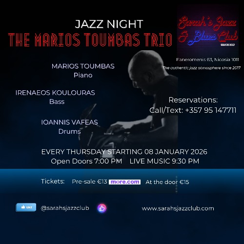 The Marios Toumbas Trio Xanthis Xenierou 35, Nicosia 1015, Cyprus Sarah's Jazz Club - Nicosia, Cyprus