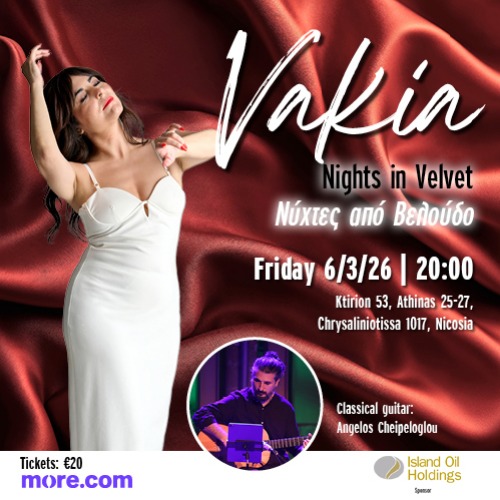 Η Βάκια Σταύρου, η διεθνούς φήμης Κύπρια ερμηνεύτρια και τραγουδοποιός, επιστρεφει για μια τελευταία βραδιά στο Κτιριο 53, τον ζεστό και ομορφο χώρο στην Λευκωσία προτού συνεχίσει την πορεία της στο εξωτερικο για τις επερχόμενες εκεί προγραμματισμένες συναυλίες της στην Ευρωπη, Ασία και Λατινική Αμερική.