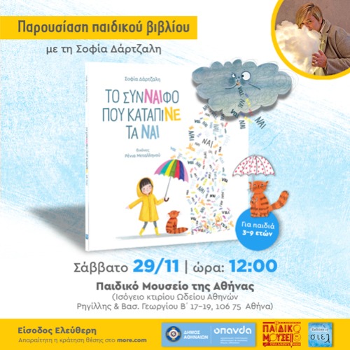 Παρουσίαση του παιδικού βιβλίου “Το σύνΝΑΙφο που κατάπινε τα ΝΑΙ” της Σοφίας Δάρτζαλη Βασ. Γεωργίου B 19, Αθήνα 106 75, Ελλάδα Ελληνικό Παιδικό Μουσείο - Αθήνα, Αττική