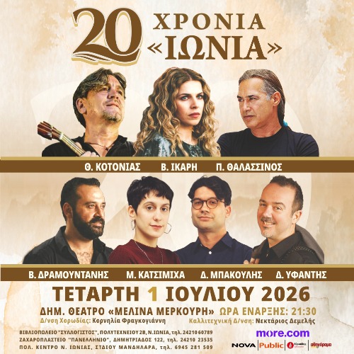 20 ΧΡΟΝΙΑ «ΙΩΝΙΑ» Πλατεία Ρήγα Φεραίου Δημοτικό Θέατρο Μελίνα Μερκούρη - Βόλος, Μαγνησία