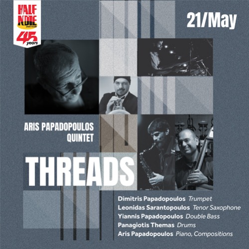 Την Πέμπτη 21 Μαΐου, η σκηνή του Half Note Jazz Club φιλοξενεί το ντεμπούτο του ARIS PAPADOPOULOS QUINTET, ενός νέου σχήματος που φιλοδοξεί να αφήσει το αποτύπωμά της ιδιαίτερης αισθητικής του στη σύγχρονη ελληνική jazz σκηνή.