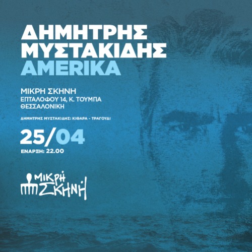 ΔΗΜΗΤΡΗΣ ΜΥΣΤΑΚΙΔΗΣ AMERIKA (solo) Επταλόφου 14 Θεσσαλονίκη ΤΚ 54454 ΜΙΚΡΗ ΣΚΗΝΗ (μη αριθμ) - Μικρή Σκηνή - Κάτω Τούμπα, Θεσσαλονίκη