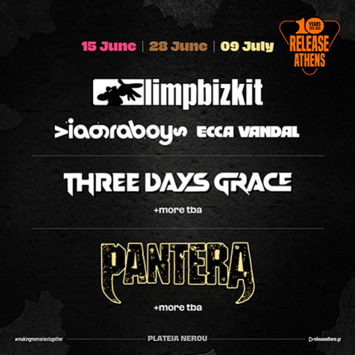 Release Athens 2026: Προσφορά τριημέρου / Limp Bizkit + Three Days Grace + Pantera Πλατεία Νερού, Φάληρο - Καλλιθέα, Αττική