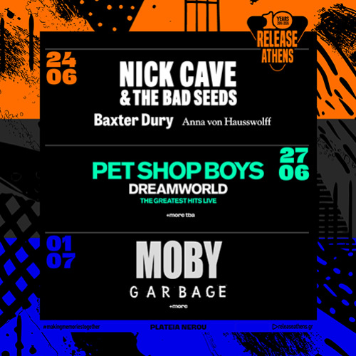 Release Athens 2026: Προσφορά τριημέρου /Nick Cave + Pet Shop Boys + Moby Πλατεία Νερού, Φάληρο - Καλλιθέα, Αττική