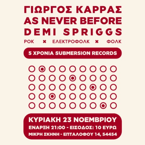 ΓΙΩΡΓΟΣ ΚΑΡΡΑΣ, AS NEVER BEFORE, DEMI SPRIGGS Επταλόφου 14 ΜΙΚΡΗ ΣΚΗΝΗ - Κάτω Τούμπα, Θεσσαλονίκη
