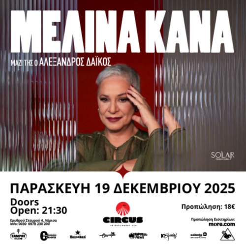ΜΕΛΙΝΑ ΚΑΝΑ LIVE@ CIRCUS.LARISSA Ερυθρού Σταυρού 4 Circus Entertainment Hub - Λάρισα