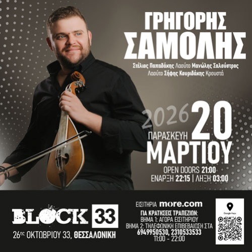 Ο Γρηγόρης Σαμόλης στο Block33 26ης Οκτωβρίου 33 Block 33 - Θεσσαλονίκη