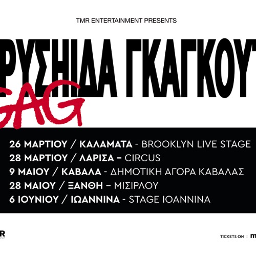 TOUR DATES 26 Μαρτίου — Καλαμάτα — Brooklyn Live Stage 28 Μαρτίου — Λάρισα — Circus 9 Μαΐου — Καβάλα — Δημοτική Αγορά Καβάλας 28 Μαΐου — Ξάνθη — Μισιρλού 6 Ιουνίου — Ιωάννινα — Stage Ioannina