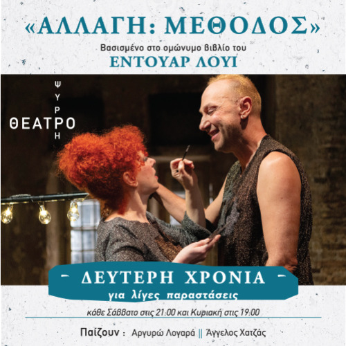 Η Εταιρία θεάτρου «Νεάπολις», παρουσιάζει για δεύτερη χρονιά λόγω επιτυχίας στο θέατρο Ψυρρή, την παράσταση «Αλλαγή: Μέθοδος» βασισμένη στο ομώνυμο βιβλίο του Εντουάρ Λουί: « Από την καταδικασμένη ζωή των παιδικών μου χρόνων, σ’ ένα καινούριο σύμπαν, όπου το δικό μου σώμα, μπορούσε να έχει θέση. »