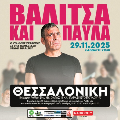 ΓΙΑΝΝΗΣ ΣΕΡΒΕΤΑΣ: ΒΑΛΙΤΣΑ ΚΑΙ ΠΑΥΛΑ Βας. Όλγας 11 & Παρασκευοπούλου 9 RADIO CITY THEATRE - Θεσσαλονίκη