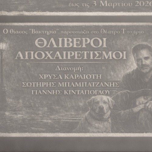 ΘΛΙΒΕΡΟΙ ΑΠΟΧΑΙΡΕΤΙΣΜΟΙ της Ειρήνης Πατσούρου Αλεξάνδρου Φλέμινγκ 16, 546 42 Θέατρο Τ - Θεσσαλονίκη
