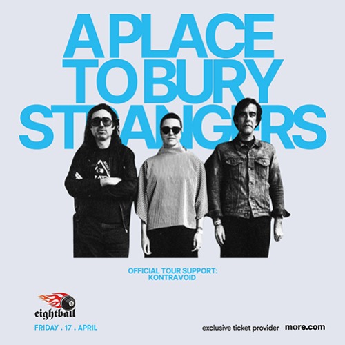 Το πιο εκκωφαντικό, παραμορφωμένο και μανιασμένο ηχητικό όχημα της σύγχρονης shoegaze και noise rock σκηνής επιστρέφει στην Θεσσαλονίκη! Οι A Place To Bury Strangers καταφθάνουν την Παρασκευή Απριλίου 2026 στο Eightball Club με σκοπό να διαλύσουν το stage και να ισοπεδώσουν το κοινό, πλαισιωμένοι φυσικά από τον αινιγματικό Kontravoid, έναν από τους πιο επιδραστικούς καλλιτέχνες της dark electronic σκηνής του σήμερα.
