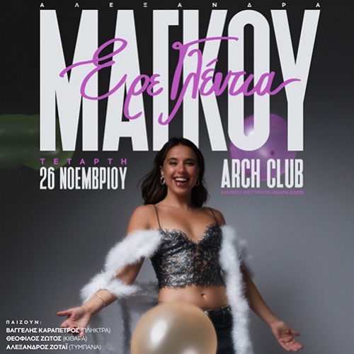 💃Η Αλεξάνδρα Μάγκου, μία από τις πιο ανερχόμενες και δυναμικές φωνές του σύγχρονου ελληνικού μουσικού τοπίου, ανεβαίνει στη σκηνή του Arch Club για μία αξέχαστη βραδιά γεμάτη ενέργεια και συναίσθημα. Με το μοναδικό της στυλ και την εκρηκτική σκηνική παρουσία, έχει κλέψει ήδη τις καρδιές του κοινού, με τις sold-out εμφανίσεις της να γίνονται viral και να απογειώνουν το μουσικό της προφίλ.