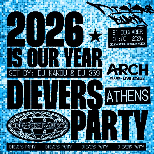 Το πρώτο party του 2026 είναι εδώ! Η χρονιά ξεκινάει όπως πρέπει — με DIEVERS! Μετά την αλλαγή του χρόνου, μόλις το ρολόι δείξει 01:00, οι πόρτες του ARCH Club – Live Stage ανοίγουν και μπαίνουμε επίσημα στο Year of Dievers. DJ KAKOU & DJ 359 αναλαμβάνουν το πρώτο set της χρονιάς και απογειώνουν την Αθήνα από το πρώτο λεπτό του 2026. New Year vibes 31 Δεκεμβρίου 01:00 ( μετά την αλλαγή του έτους ) ARCH Club – Athens 2026 IS OUR YEAR. Let’s start it together.