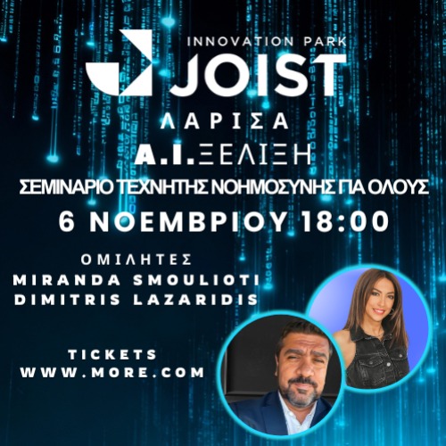 AIξέλιξη - Εξελίξου στην Τεχνητή Νοημοσύνη Βαλτετσίου και Τριπόλεως, Λάρισα 413 36 JOIST Innovation Park - Larisa, Λάρισα